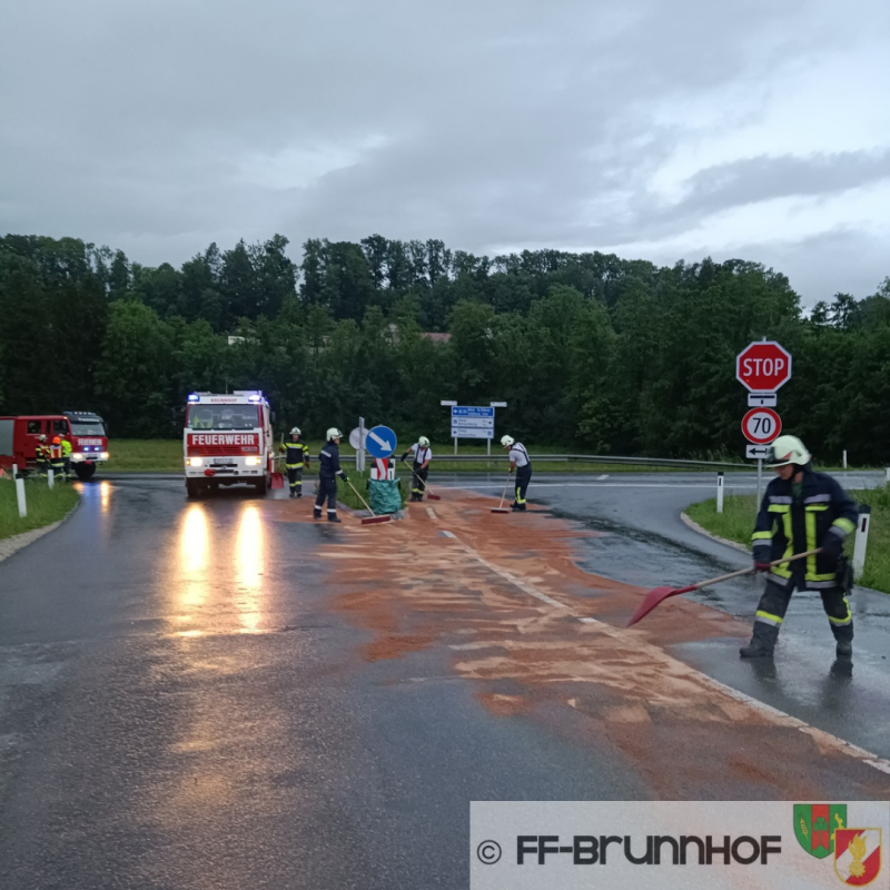 Da wir beim Eintreffen am Einsatzort feststellten, dass sich die Ölspur im Einsatzgebiet der FF Vestenthal befand, wurde diese ebenfalls alarmiert und die Spur wurde gemeinsam beseitigt.